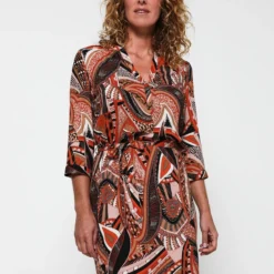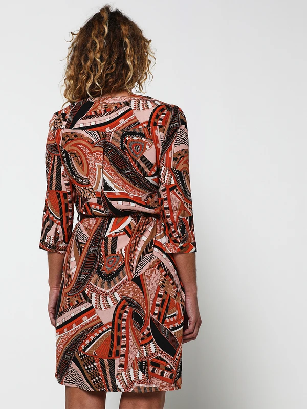 - Passants à la taille avec ceinture en tissu imprimé assorti à nouer