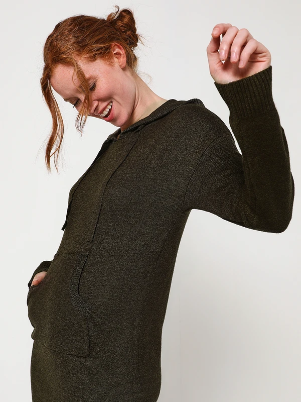 - Bord côtes poche kangourou, contour de la capuche et empiècement longueur manches tricotés en fils lurex