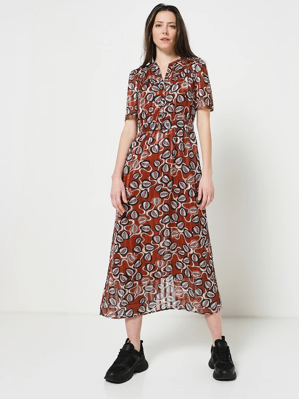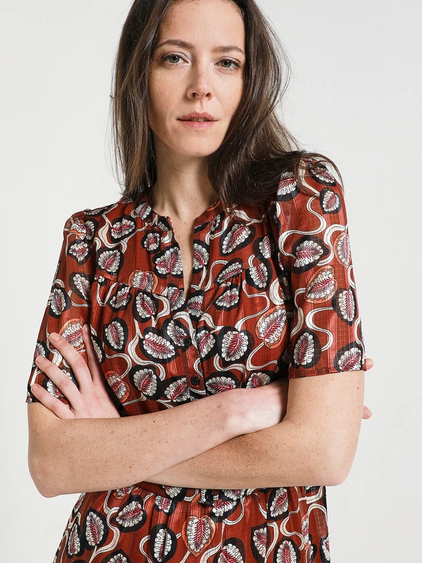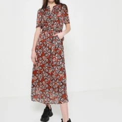 ROBE blousante à imprimé et rayures satinées SEE U SOON