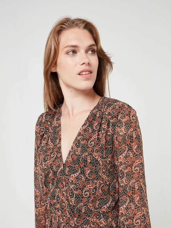 ROBE cache-cœur SEE U SOON en voile imprimé cachemire.