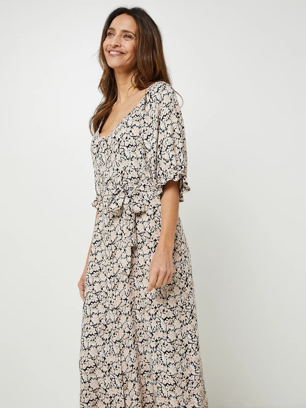 - Livrée avec une ceinture en tissu imprimé à nouer