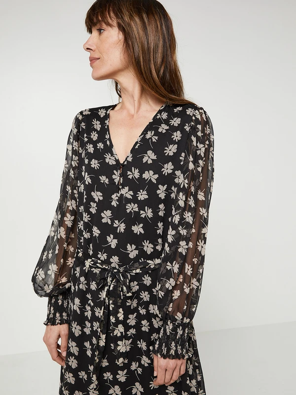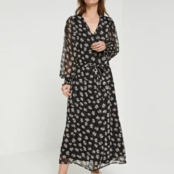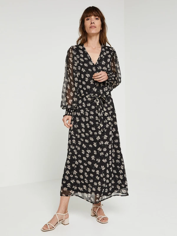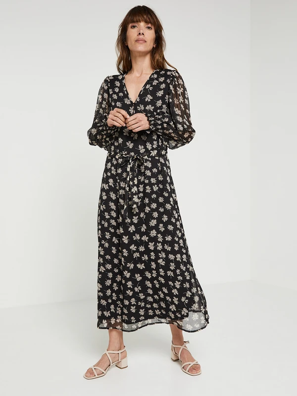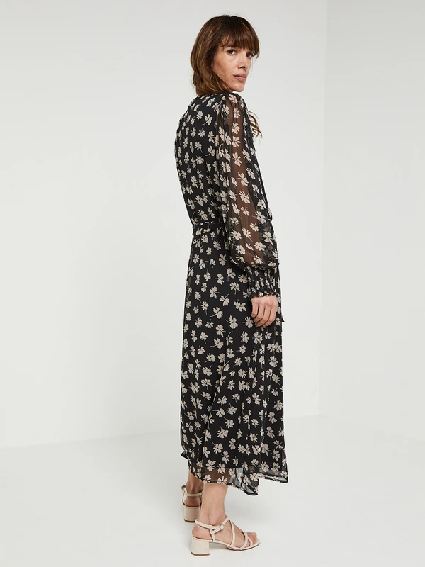 ROBE longue ceinturée en voile fleuri VERO MODA.