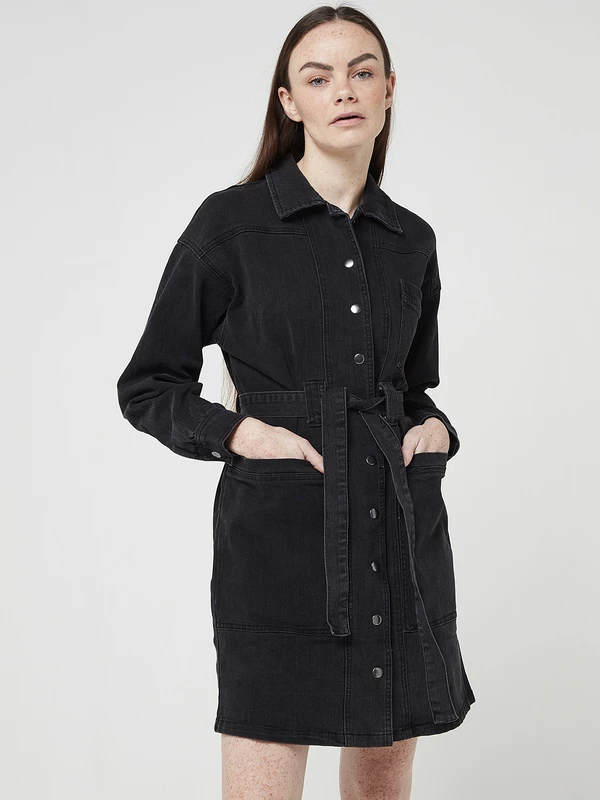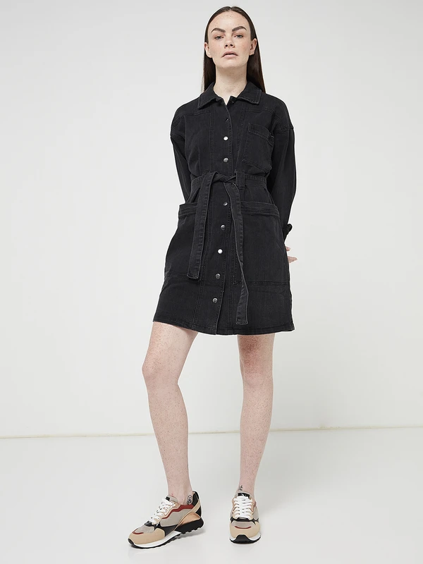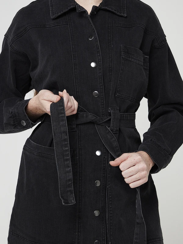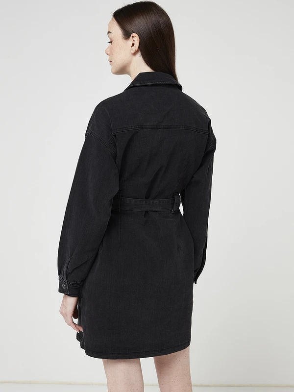 ROBE chemisier en black denim stretch VILA.