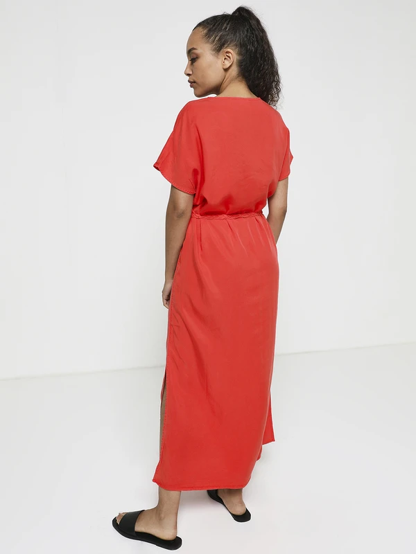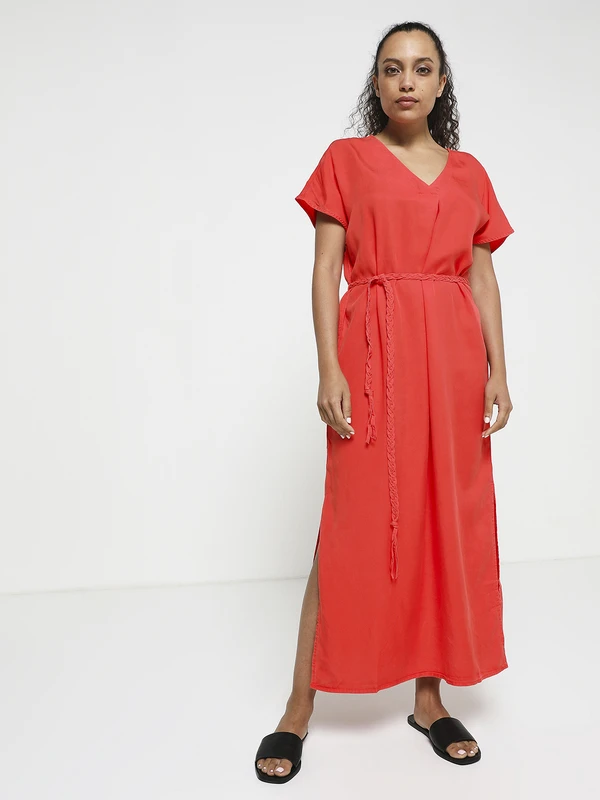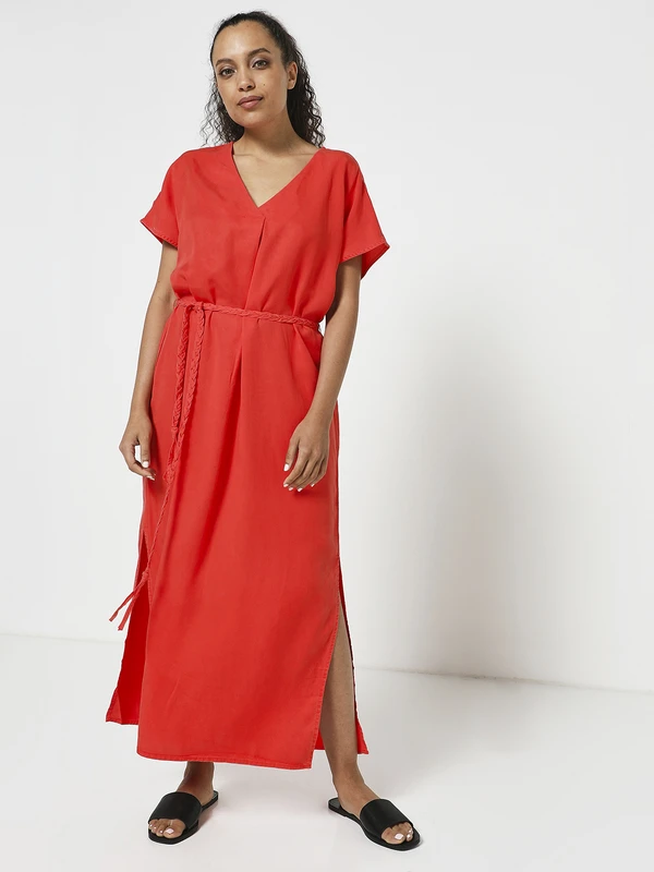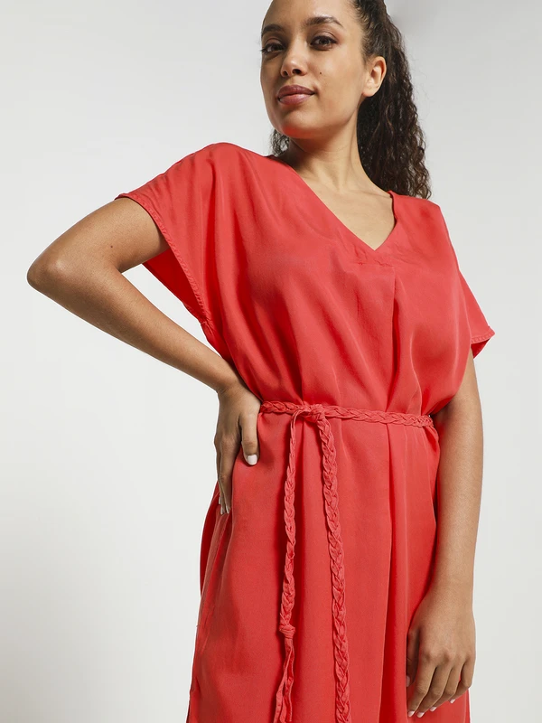 - Coupe droite cintrée par passants et ceinture en tissu tressée à nouer