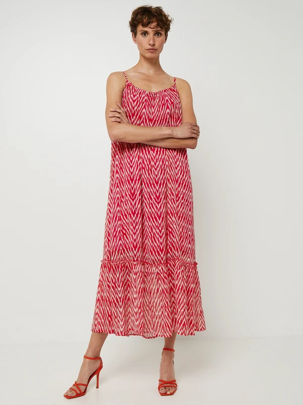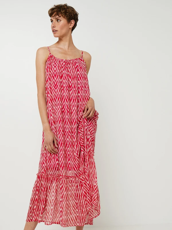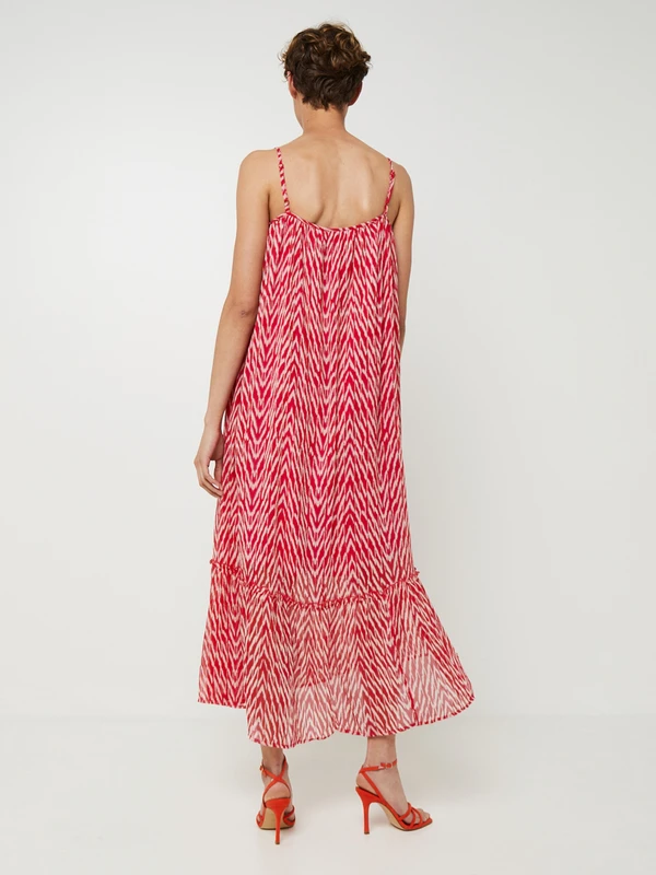Vila Robe Maxi Longue Fluide À Bretelles, Imprimé Chevrons Effet Aquarelle – Rose